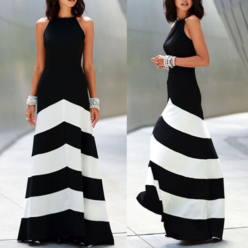 Shop Fashion Black And White Mix Striped Dress Women Hot Long