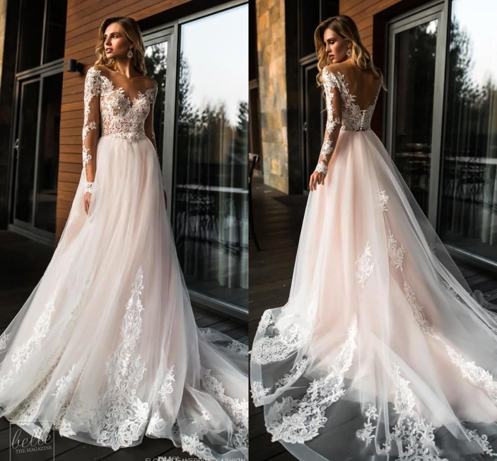 Discount 2019 Gorgeous Sheer Long Sleeves Lace Wedding Dresses A