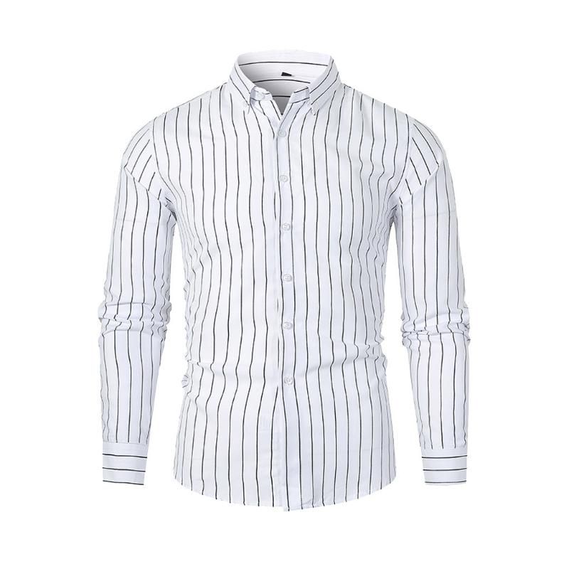 2020 Summer Clothing Men Dress Shirt Slim Stripe Print Shirt Long