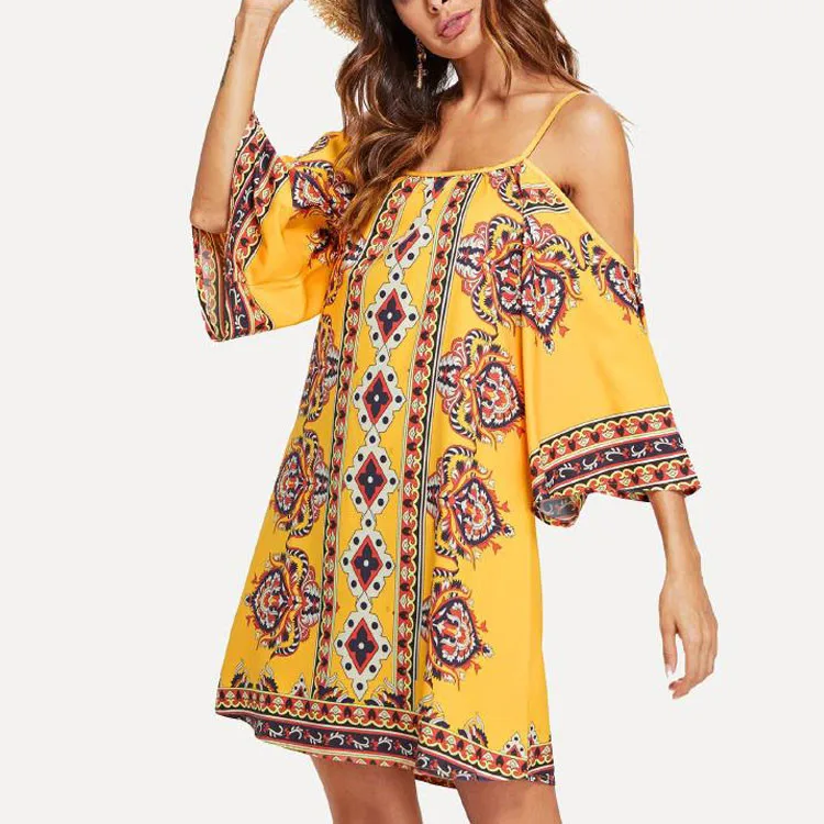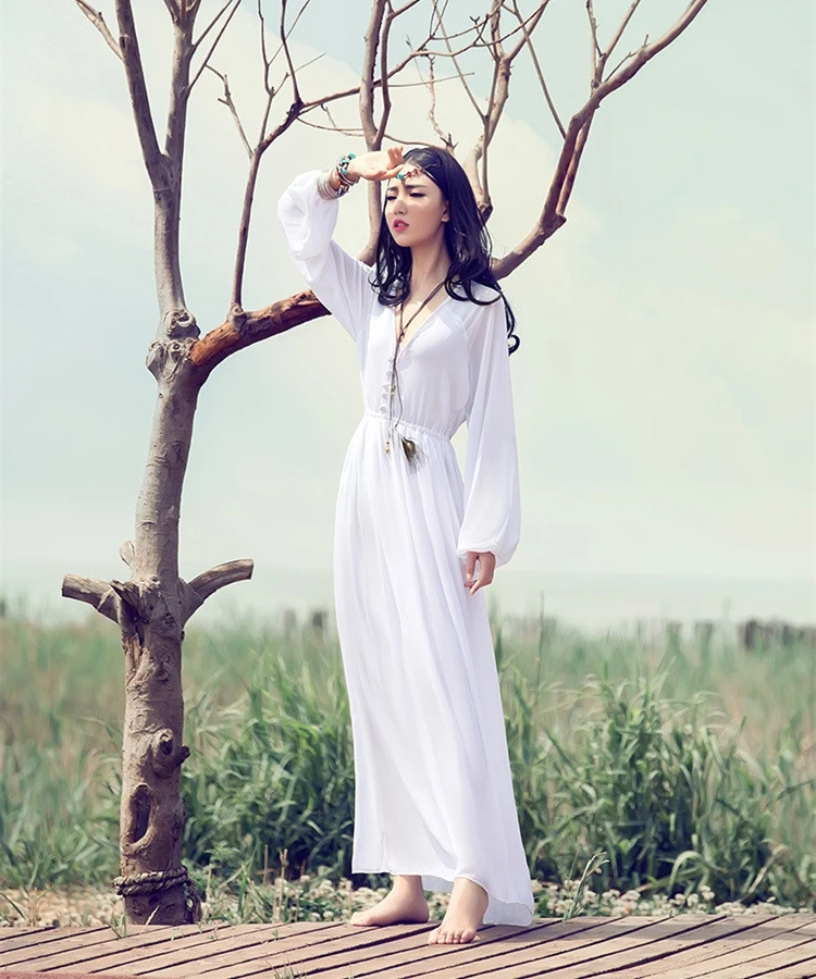 Long Sleeve Women Bohemian Dress Hippie Clothing Maxi Beach Dress