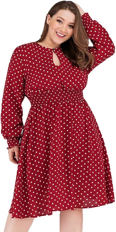 Bsjmlxg Women V Neck Long Sleeve Dot Print Dress High Waist Plus