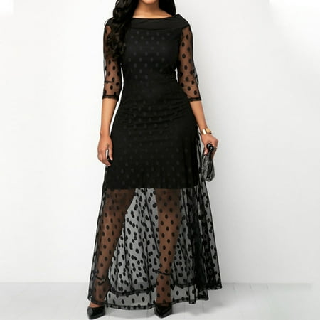 Womens Long Sleeve Sexy Lace Dress With Lining See Through Polka Dot Dresses Summer Dress Gown Walmart Canada