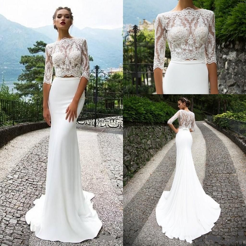 Two Pieces 2020 Bohemian Lace Wedding Dresses Plus Size Long
