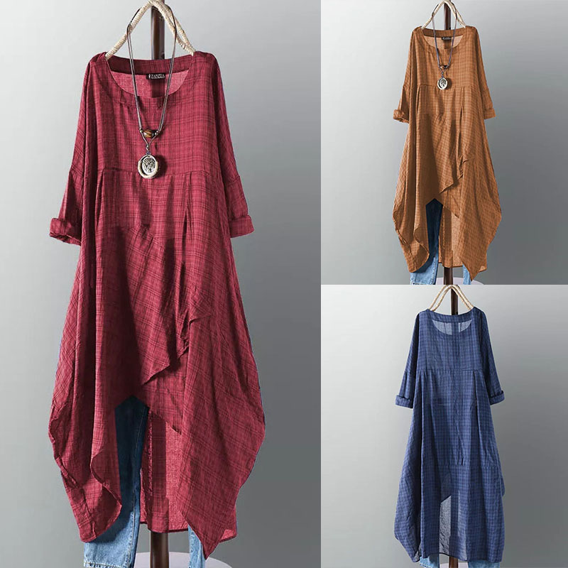 Uk Women Casual Loose Check Dress Long Sleeve Summer Shirt Tunic