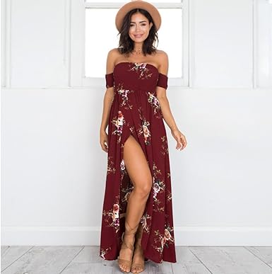 Boho Backless Maxi Dress With Split Red Dress Maxi Womens Beach