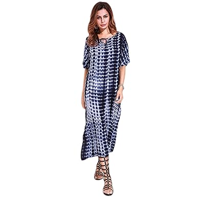 Women Summer Maxi Dress Loose Fitting Short Sleeved Dress Bice
