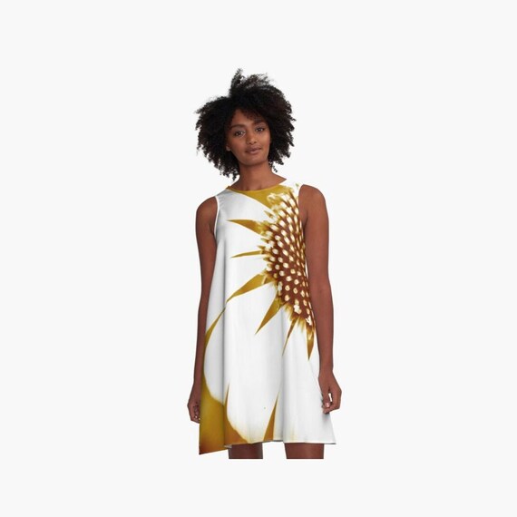 White Mod Flower A Line Summer Dress Womens Artwear Shift Etsy