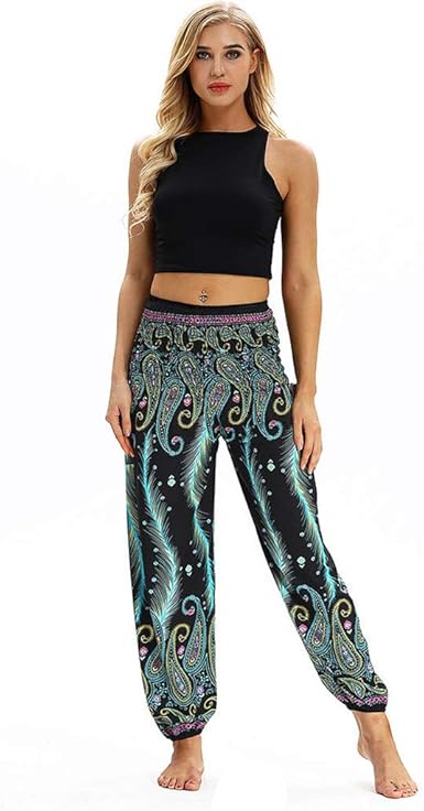 Wodceeke Summer Women S Loose Yoga Pants Bohemian Feather Harem