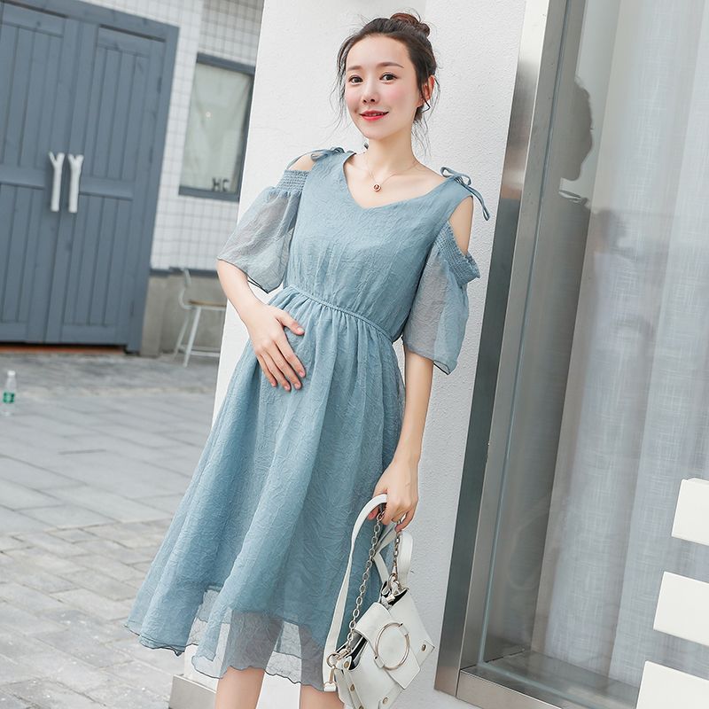 2020 Sweet Shoulder Off Slim Waist Maternity Long Dress Summer