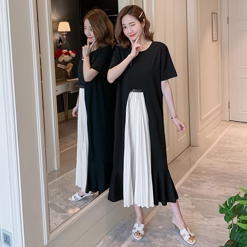 2020 Black Patchwork White Maternity Summer Dress Short Sleeve