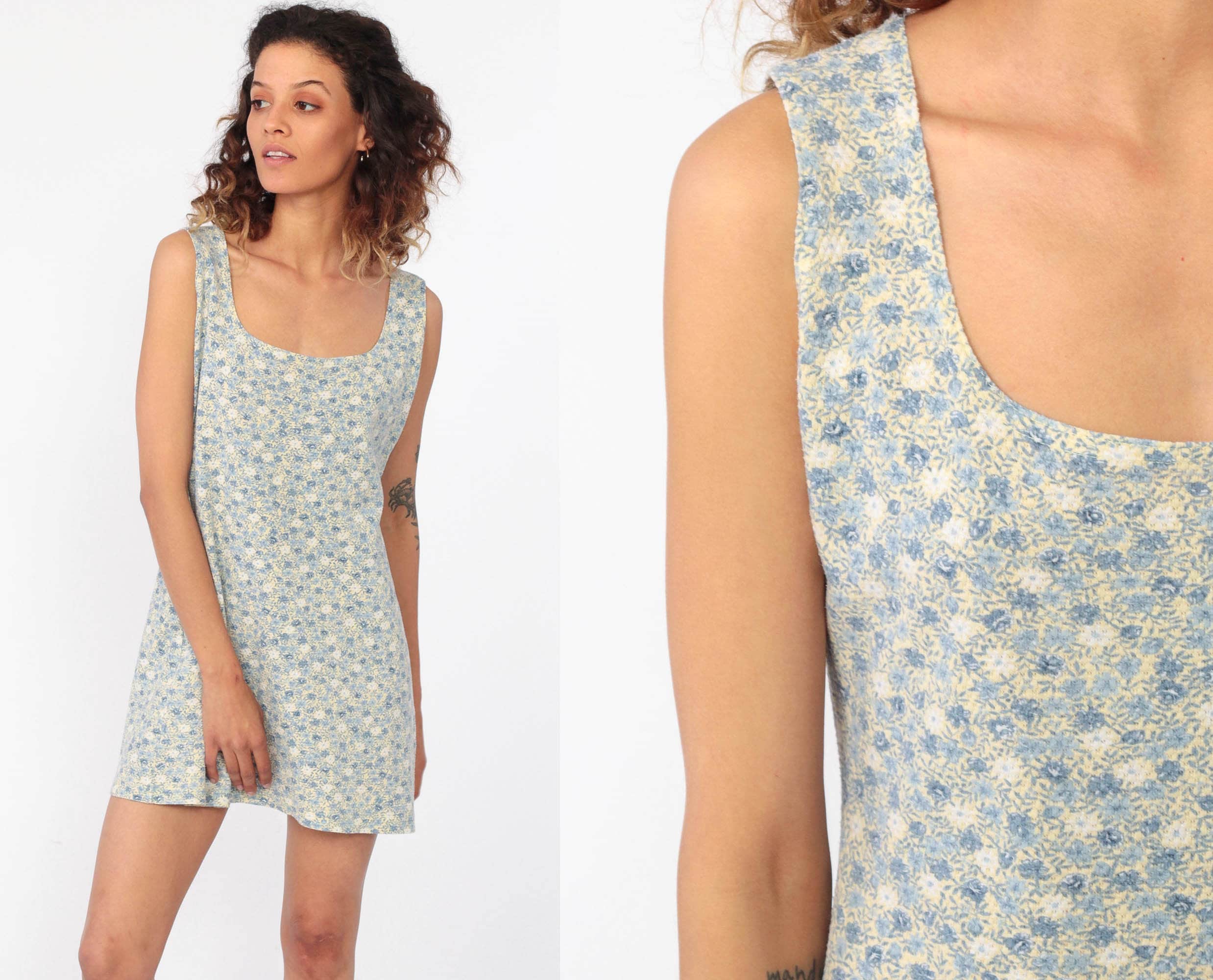 Floral Micro Mini Dress 90s Sundress Petite Grunge Blue Floral Sun