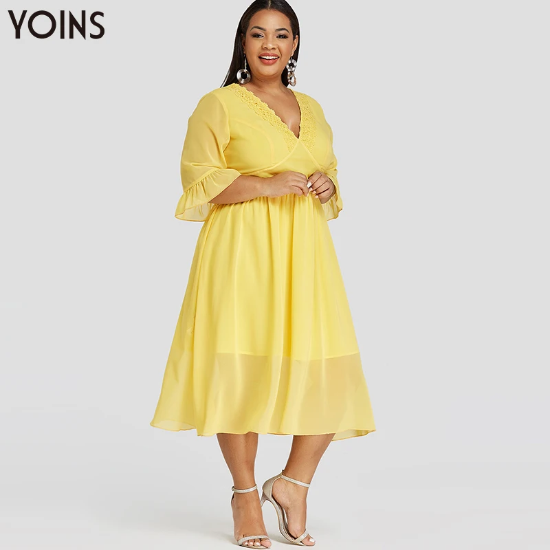 Yoins 2020 Summer Dress Deep V Neck Drawstring Waist Half Bell