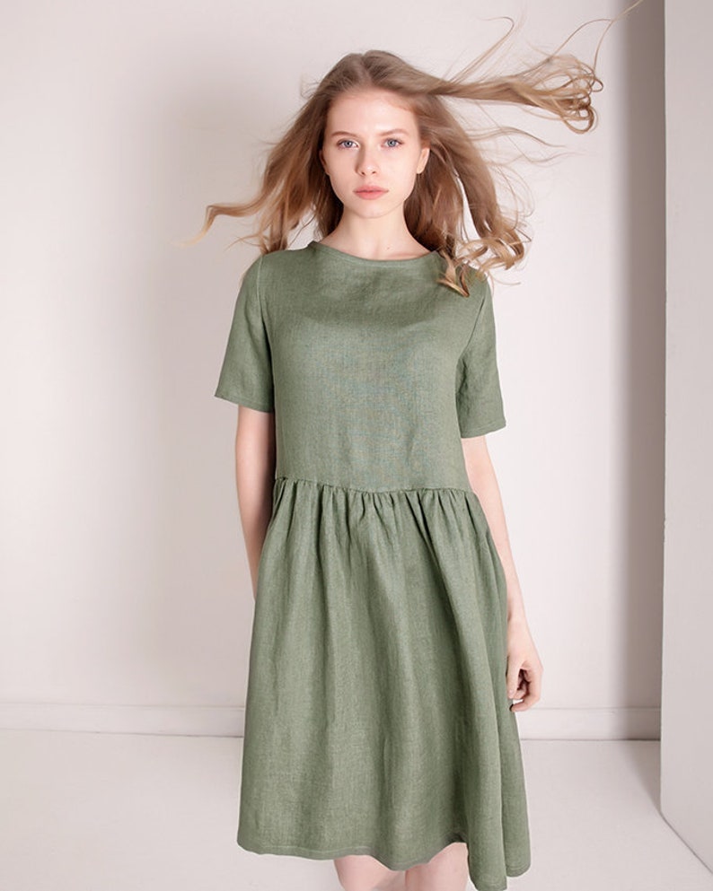 Linen Darling Dress Linen Ruffle Dress Moss Green Linen Etsy