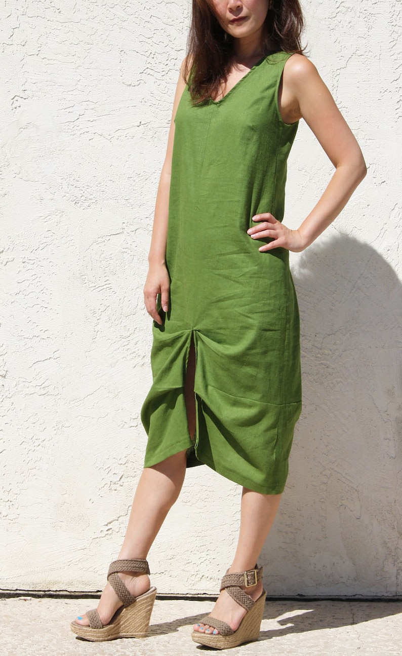 Pearl Moss Green Linen Dress Sleeveless Dress Linen Dress Midi
