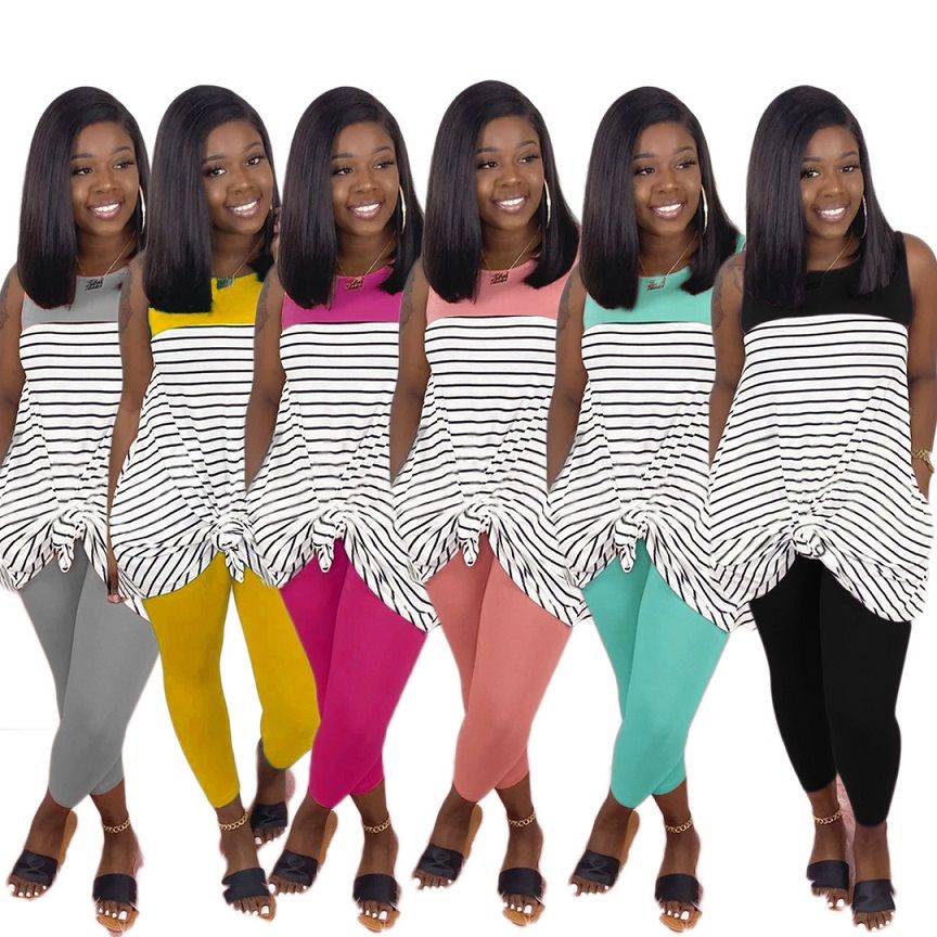 2020 Women Summer Clothes Striped Print 2 Two Piece Outfits Set