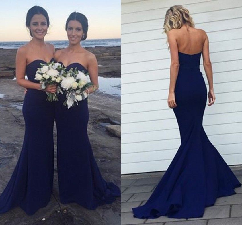 Navy Blue Simple Mermaid Bridesmaids Dresses 2019 Sweetheart