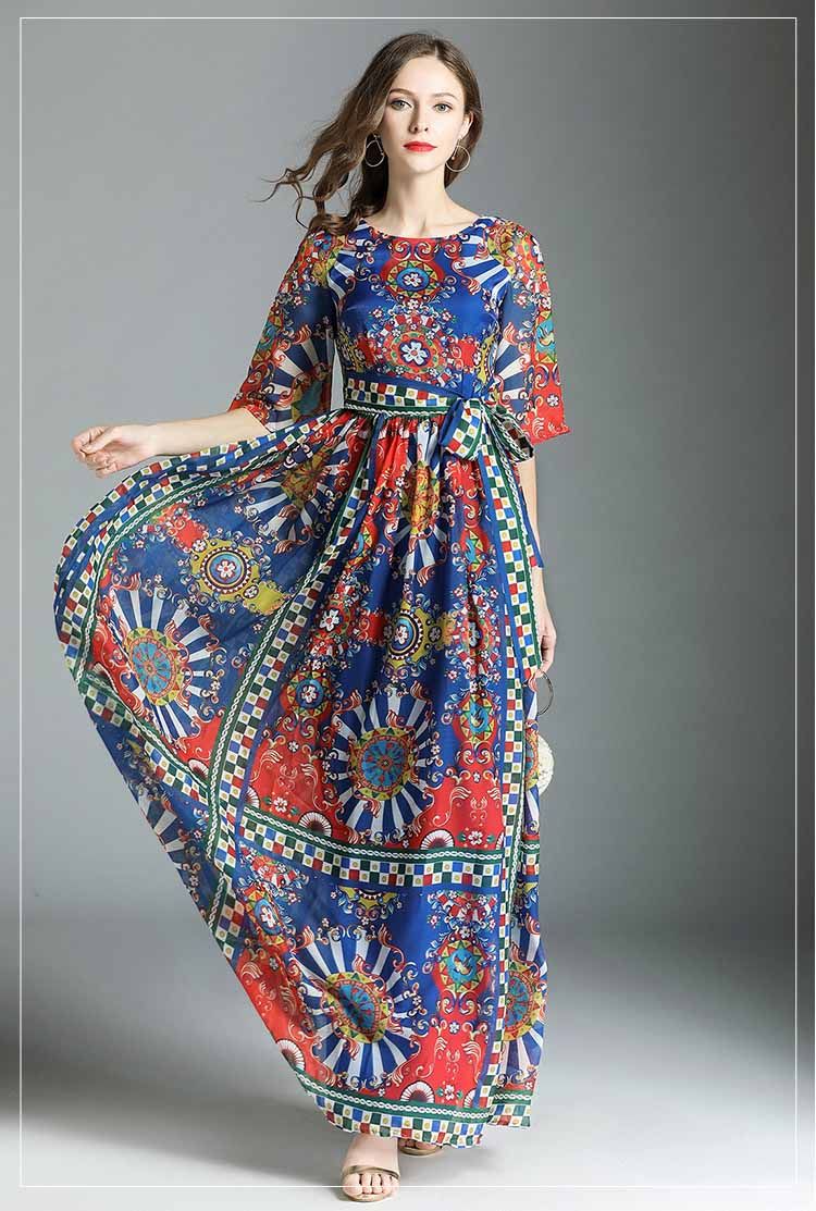 Bohemian Floral Print Flare Sleeve Maxi Dress Maxi Dress Maxi
