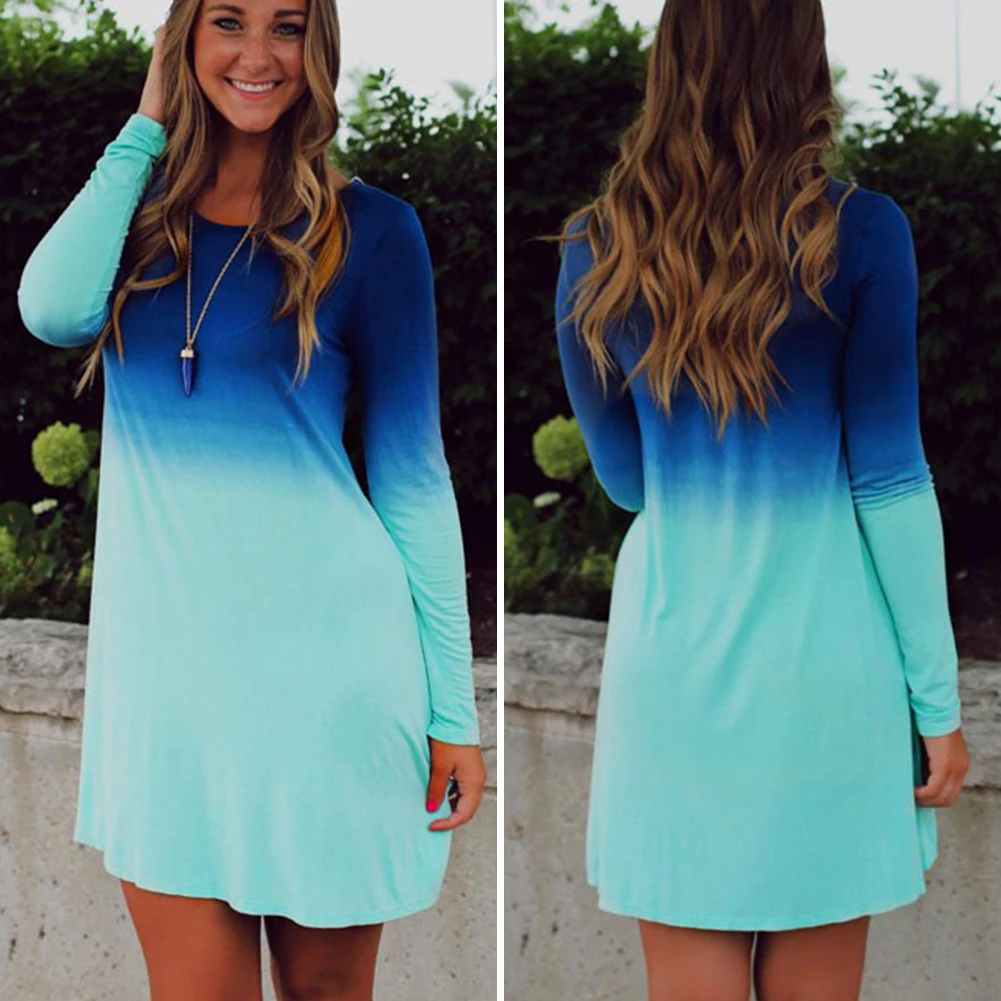 Sea Blue Ocean Fashion Summer Dress Women Ladies Long Sleeve