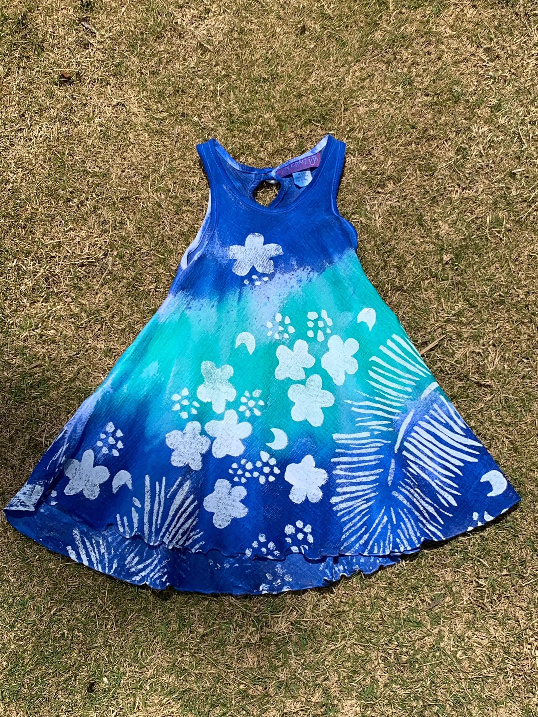 Crazy Fish Summer Dyed Dress In Ocean Blue With Flowers Hand Etsy