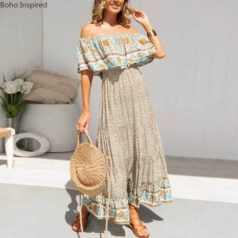 Boho Inspired Women S Casual Summer Dress Off Shoulder Cotton Long