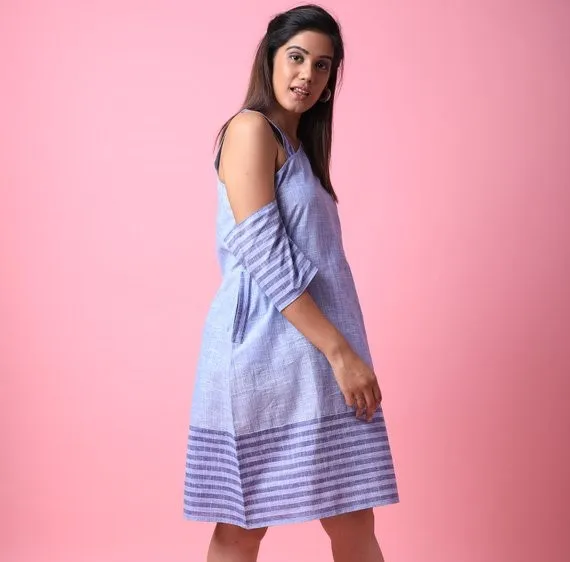 Women Summer Cotton Linen Boho Party Wear Short Off Shoulder Knee