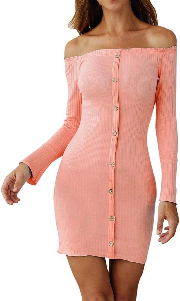Amazon Com Summer Dresses For Women Sundress Ladies Sexy Off Shoulder Bodycon Party Mini Dress Labour Day Party Cosplay Costume By Sagton Pink M Kitchen Dining