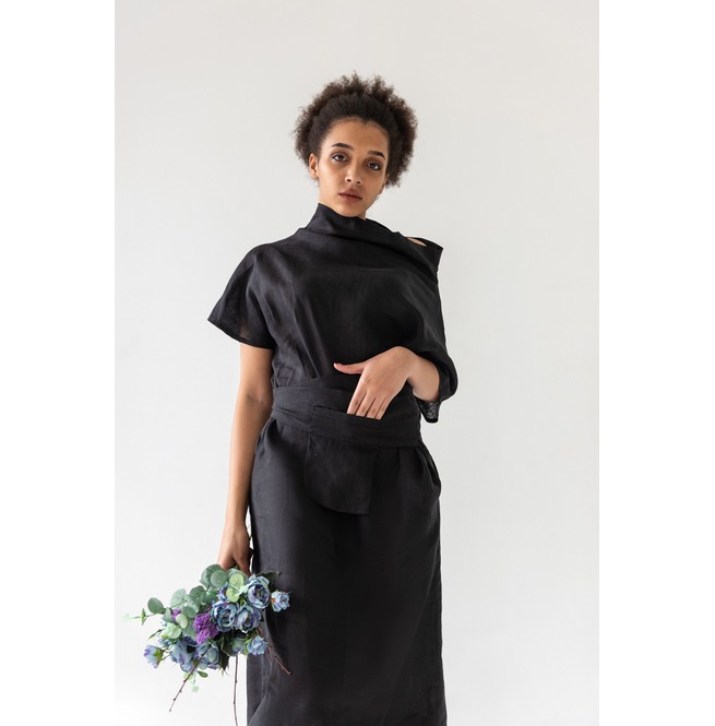 Black Organic Linen Summer Dress Turtle Neck Shift Rebelsmarket