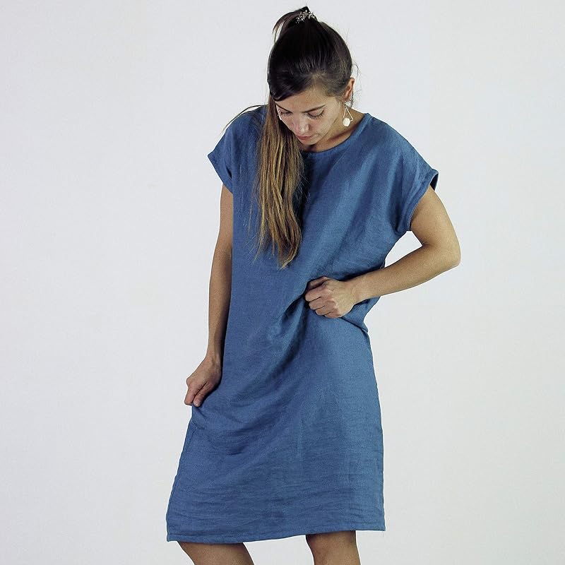 Linen Summer Dress With Drop Shoulder Short Sleeves Oversized