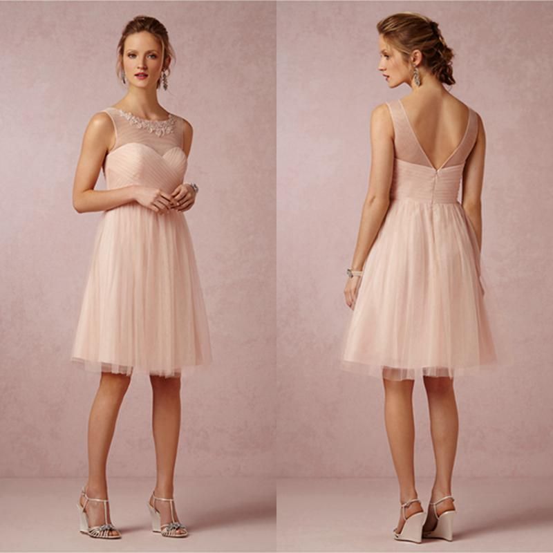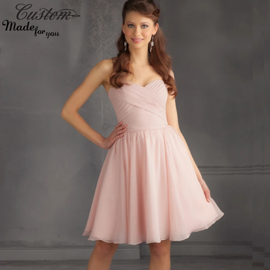 Short Knee Length Chiffon Bridesmaid Dress Blushing Pink A Line V