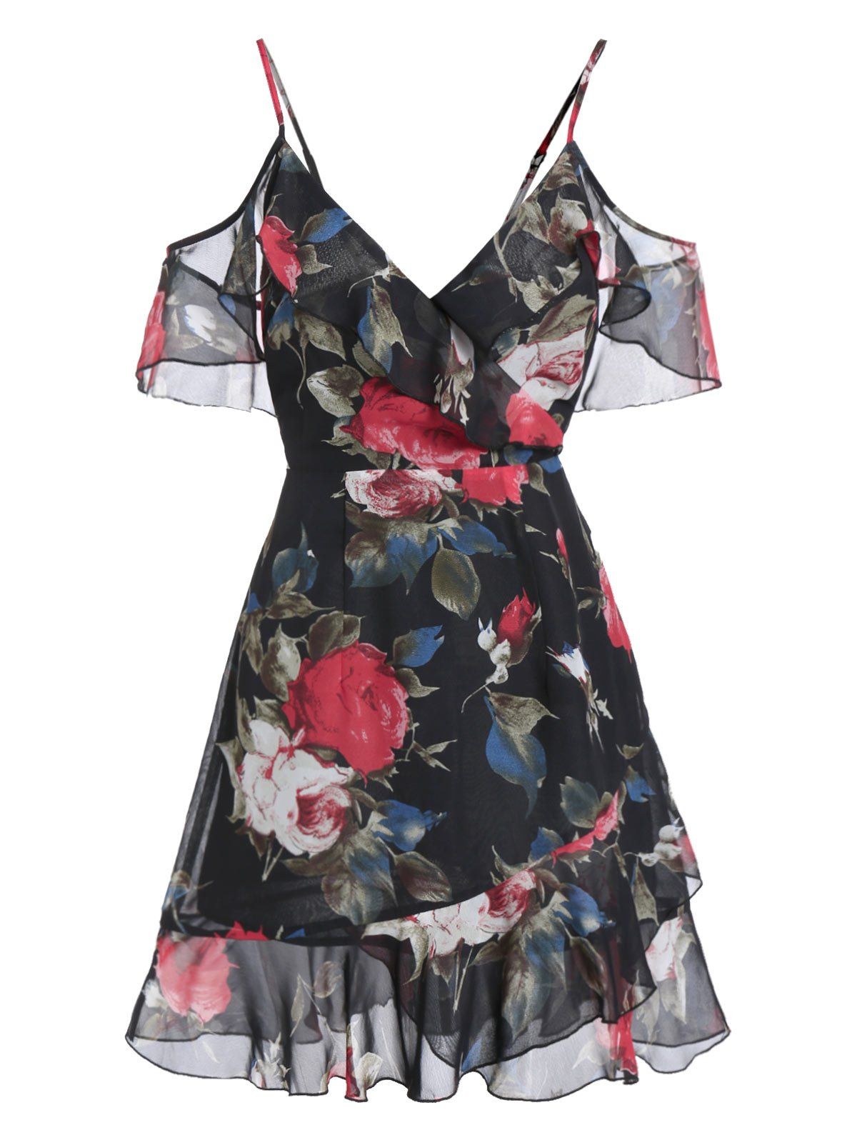 42 Off Cold Shoulder Flower Print Pep Hem Mini Dress Rosegal