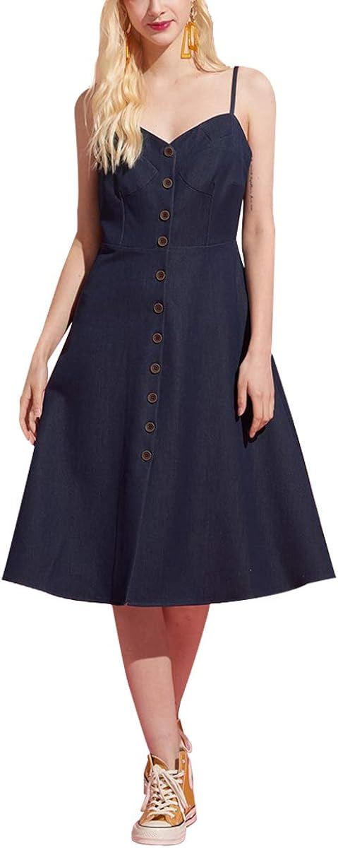 Summer Bodycon Sleeveless Denim Dress For Women Sexy Petite Button