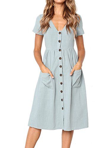 Voopptaw Womens Summer Short Sleeve V Neck High Waist Button