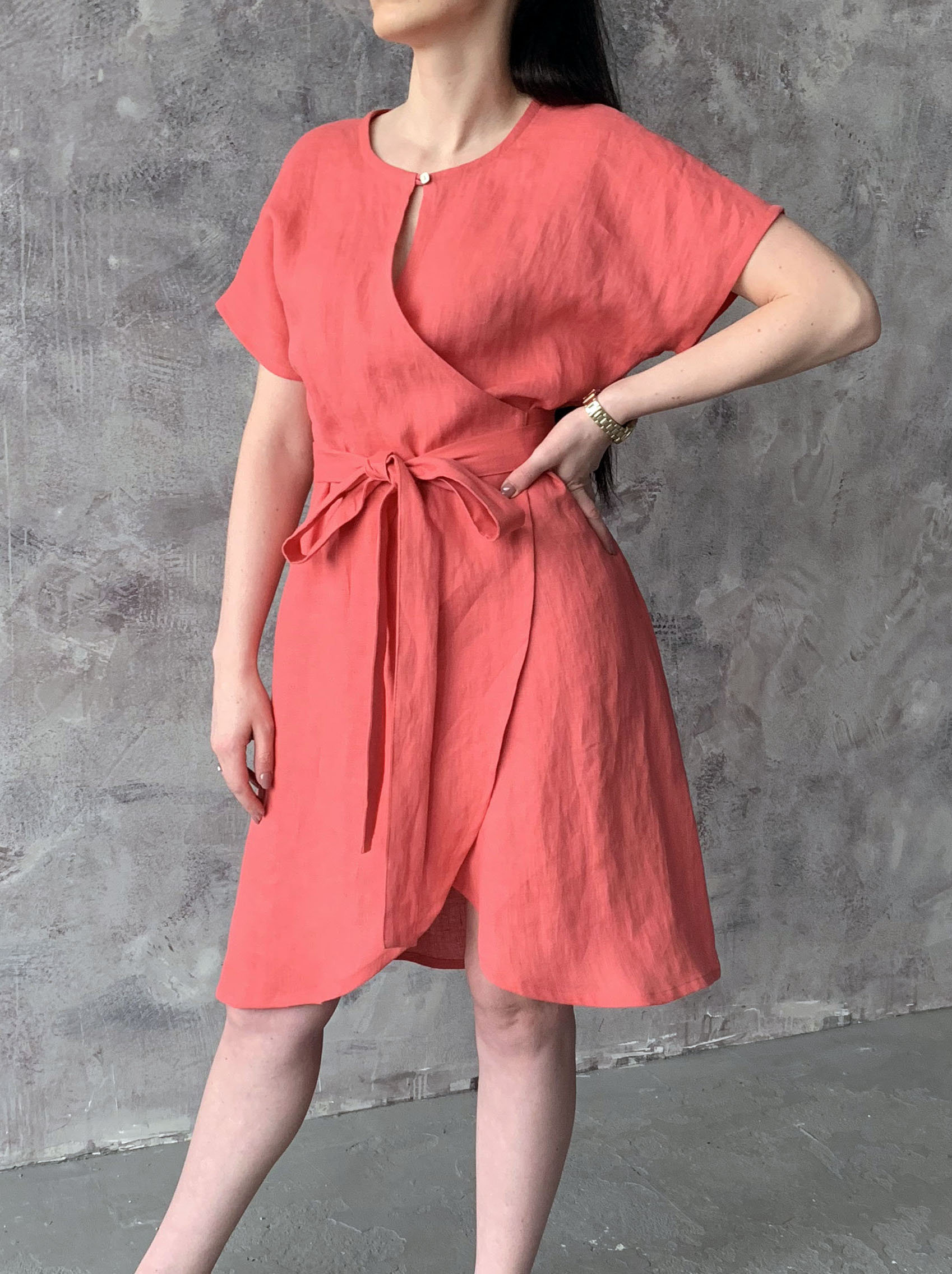 Linen Loose Kimono Wrap Summer Dress With Pockets Coral Pink Etsy