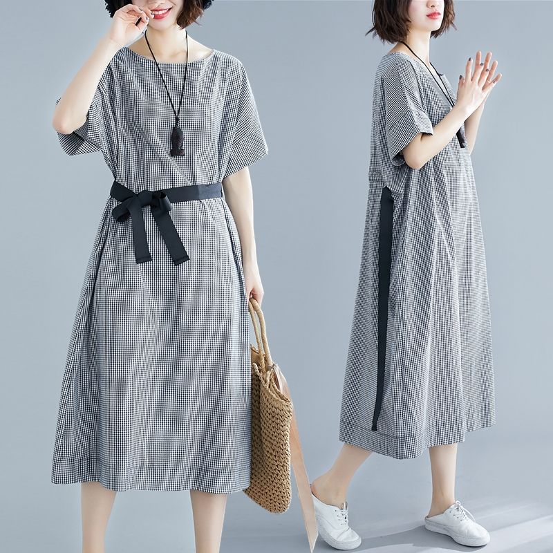 Shein Self Belted Gingham Dress 2018 Summer Round Neck Half Sleeve