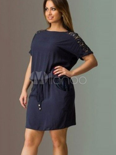 Shift Dress Plus Size Womens Lace Short Sleeves Round Neck