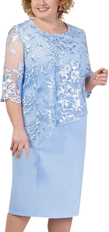 Womens Dresses Plus Size Summer Casual O Neck Half Sleeve Knee