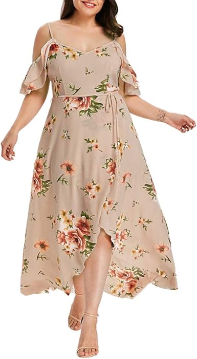 Women S Plus Size Summer Dresses Sexy Strap Floral Midi Dress Cold