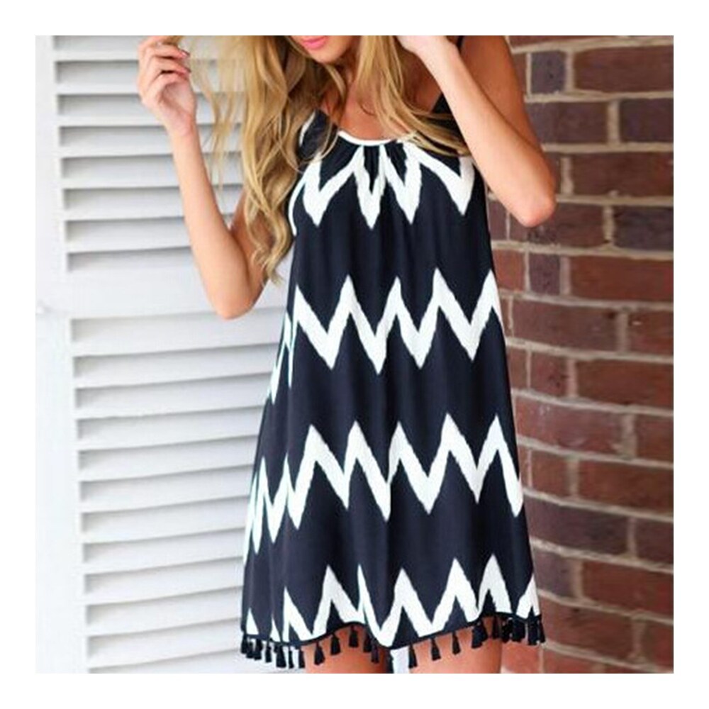 Women Summer Beach Dress Backless Tassel Sexy Mini Dress Bohemian