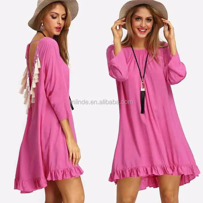 Womens Dress Summer Plus Size Casual Off Shoulder Tassel Mini