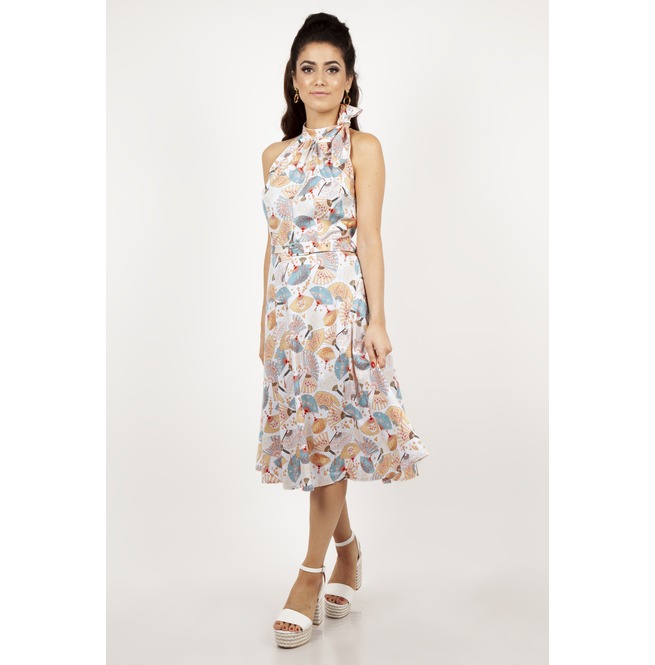 Tabby High Neck Fan Print Jersey Summer Dress Rebelsmarket