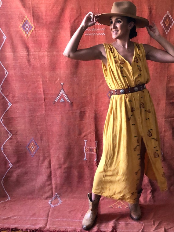 Vintage Yellow Embroidered Rayon Indian Dress Rayon Summer Etsy