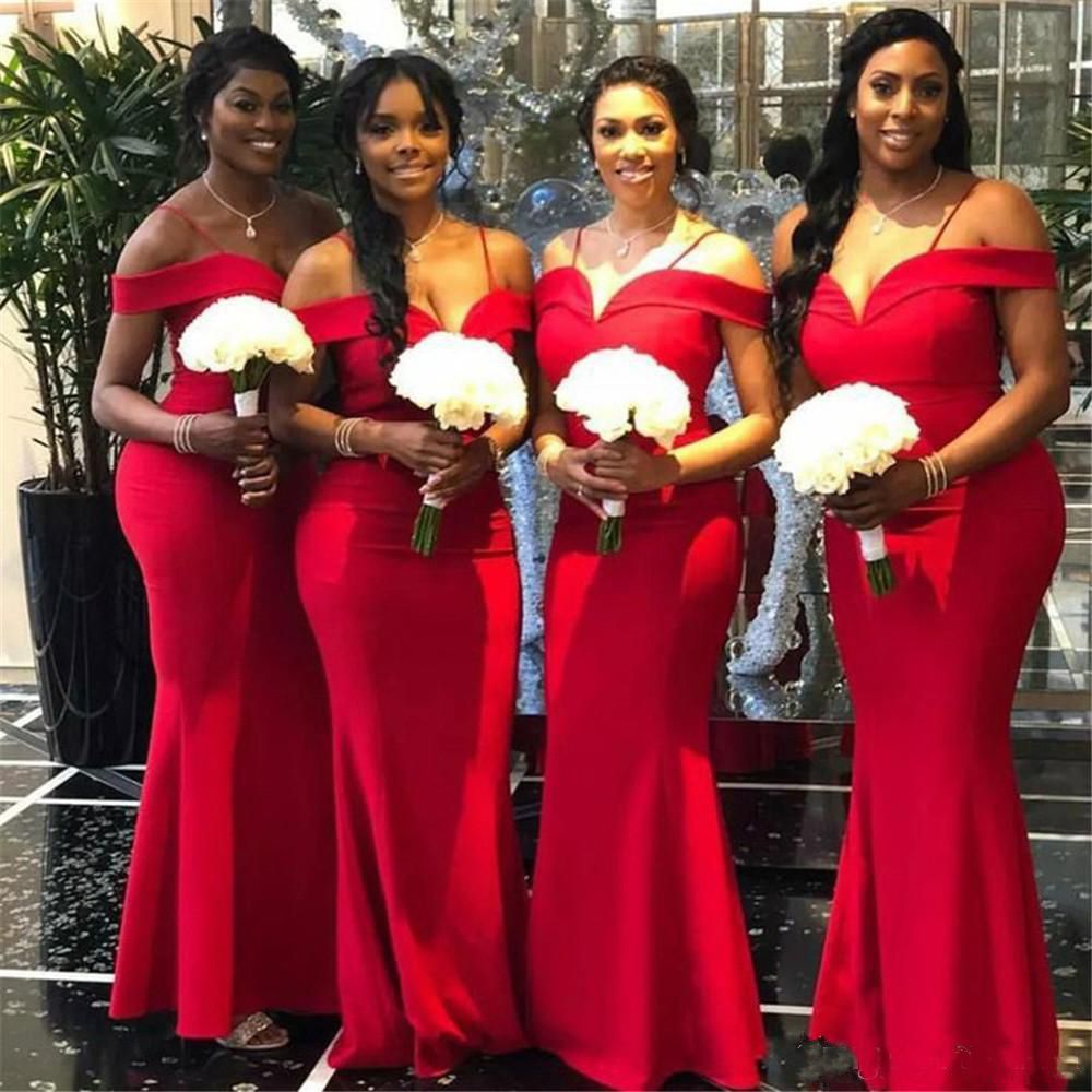2020 African Red Off The Shoulder Bridesmaid Dresses Floor Length