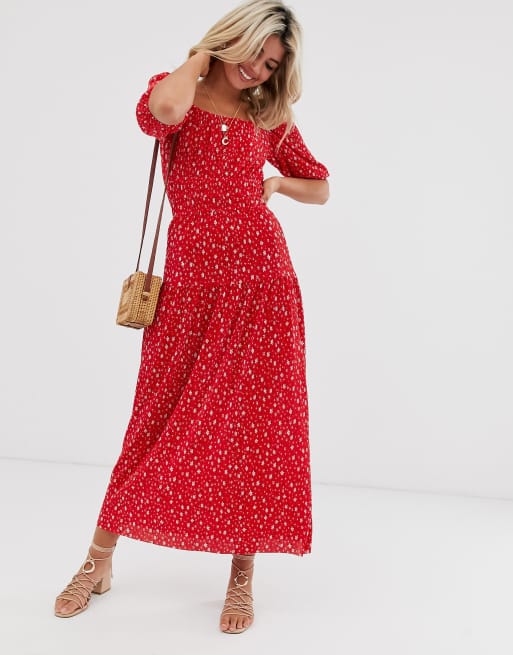 Millie Midi Dress In Red Ditsy Floral Bardot Silkfred