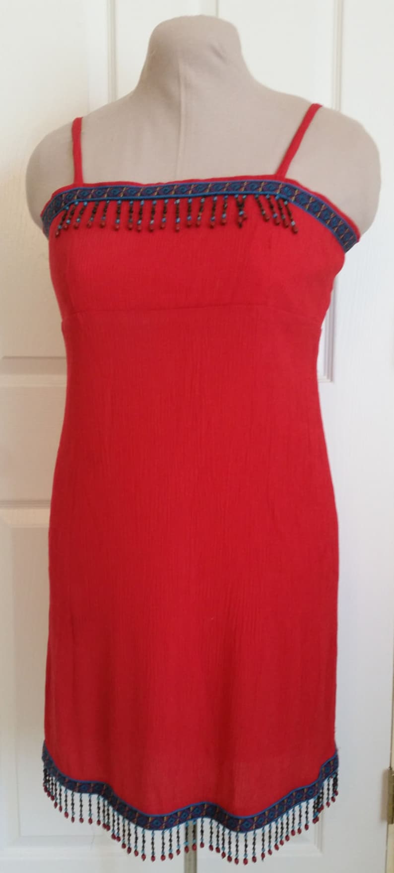 Red Cotton Gauze Sundress Summer Dress W Beaded Fringe Etsy