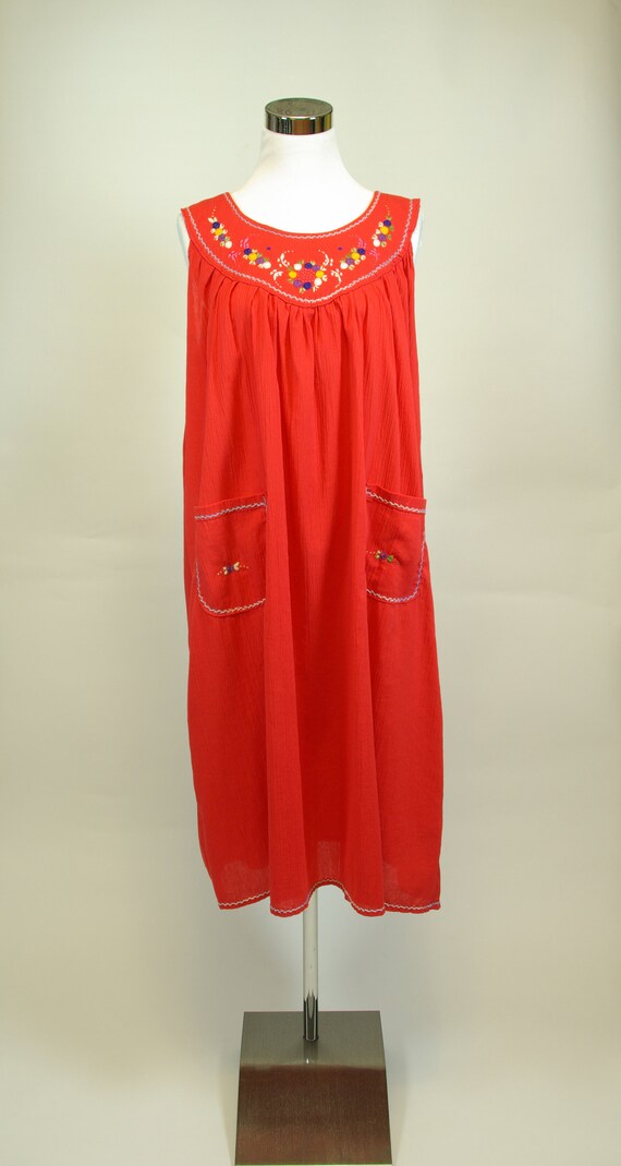 Vintage Red Gauze Cotton Tent Dress From Honey Moon Muse
