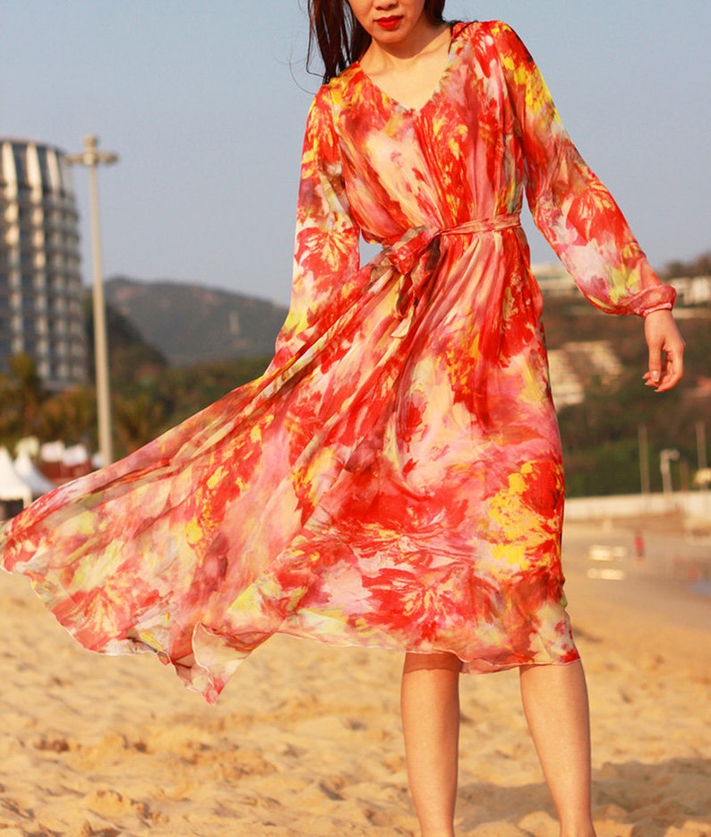 Orange Summer Dresses Plus Size Sundress V Neck Chiffon Dress Etsy