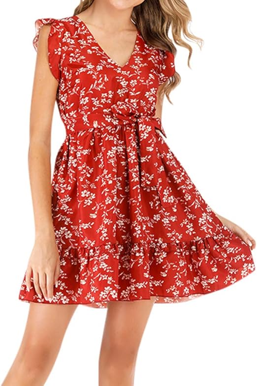 Mingriya Womens Short Sleeve Summer Dress V Neck Boho Sundress