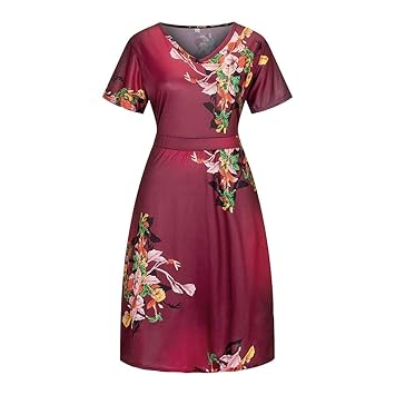 Amazon Com Vintage Summer Dresses Women Retro Print Lady Elegant