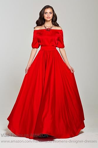 Amazon Com Red Summer Dress Silk Dress Maxi Off Shoulder Dress