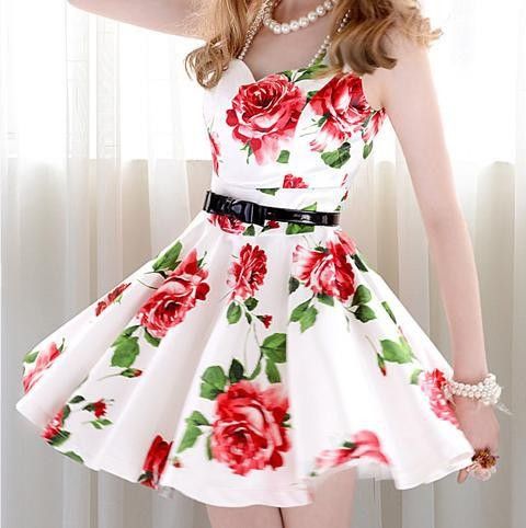 2013 Fashion Women Summer Dress White And Red Flower Slim Waist